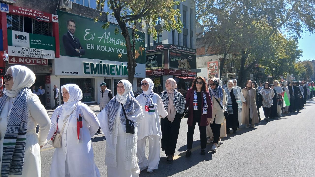 AK Parti Sakarya İl Kadın Kolları, İsrail'in Gazze'ye yönelik saldırılarına ve Sumud Filosu'na yapılan operasyonlara tepki göstermek amacıyla Adapazarı'nda "Gazze İçin Sessiz Çığlık" temalı bir yürüyüş düzenledi.