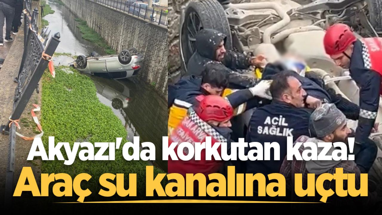 Kaza, Akyazı ilçesi Yahyalı Bağlantı yolu üzerinde meydana geldi. Sürücüsü öğrenilemeyen 34 JK 10** plakalı otomobil, yağış nedeniyle kayganlaşan yolda kontrolden çıkarak yol kenarındaki su kanalına uçtu. İhbar üzerine olay yerine sağlık, itfaiye ve polis ekipleri sevk edildi. Kanalda ters dönen araçta sıkışan sürücü, itfaiyenin ve vatandaşın çalışmaları sonucunda çıkartılarak sağlık ekiplerine teslim edildi. Yaralı, ilk müdahalenin ardından Akyazı Devlet Hastanesine sevk edildi.