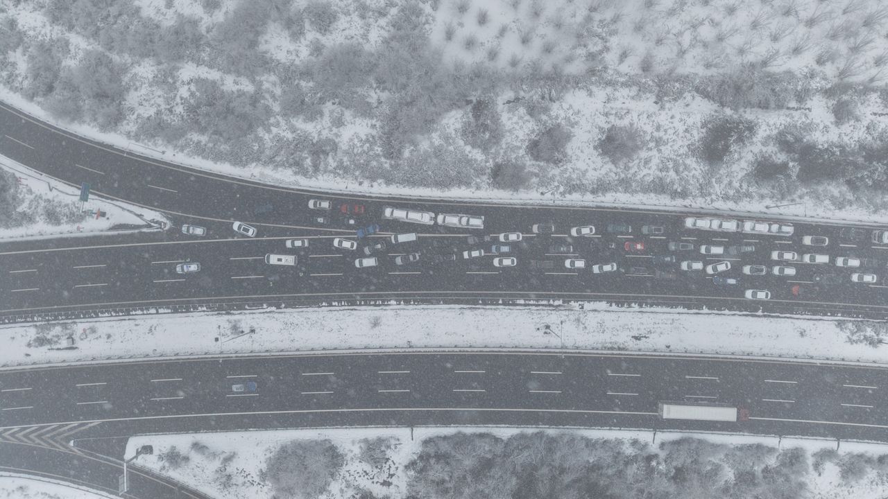 Anadolu Otoyolu’nun Bolu Dağı geçişinde tipi şeklinde etkili olan kar yağışı nedeniyle ulaşımda aksamalar yaşanıyor. Yoğun kar ve düşük görüş mesafesi sebebiyle otoyolda aralıklarla trafik kazaları meydana gelirken, kazalar nedeniyle yol zaman zaman kısmen trafiğe kapatılıyor. Karayolları ekiplerinin hızlı müdahalesiyle kazaların yaşandığı bölgelerde yol kısa sürede yeniden ulaşıma açılırken, küreme ve tuzlama çalışmalarının daha hızlı ve güvenli şekilde yürütülebilmesi için jandarma ekipleri otoyolu belirli aralıklarla trafiğe kapatarak kontrollü geçiş sağlıyor.