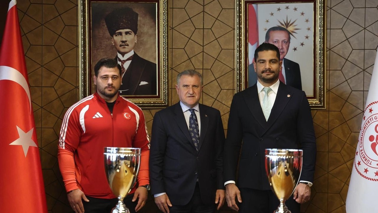 Gençlik ve Spor Bakanı Osman Aşkın Bak, Arnavutluk’ta düzenlenen Avrupa Şampiyonası’nda 2 altın, 3 gümüş ve 6 bronz olmak üzere toplam 11 madalya kazanan milli güreşçileri, 13. kez Avrupa şampiyonu olarak rekor kıran Rıza Kayaalp’i ve Türkiye Güreş Federasyonu Başkanı Taha Akgül’ü öncülüğünde elde edilen başarıların ardından makamında kabul etti.