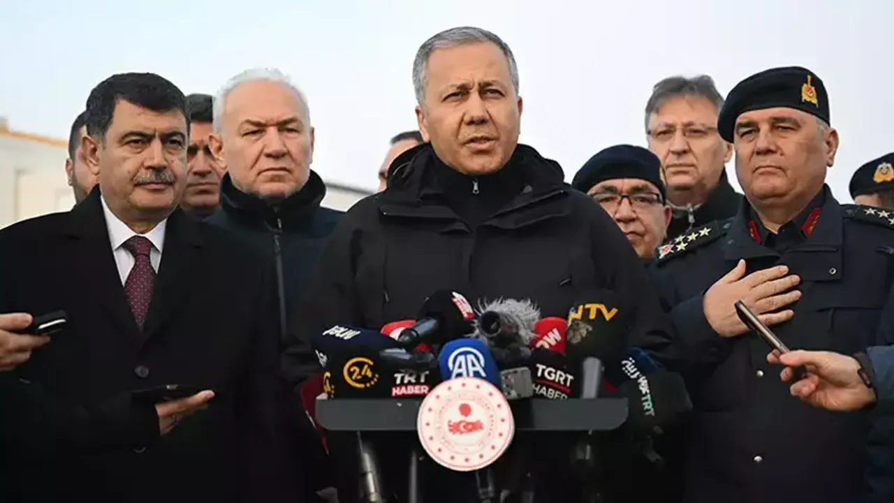 Bakan Yerlikaya, dün gece Ankara'da meydana gelen uçak kazasının ardından bölgedeki Mobil Koordinasyon Merkezi'nde basın mensuplarına açıklamalarda bulundu. Yerlikaya, içerisinde Libya Genelkurmay Başkanı Orgeneral Muhammed Ali Ahmed Al Haddad ve beraberindeki 4 kişi ile üç mürettebatı taşıyan Falcon 50 tipi uçağın düşmeden önce saat 20.32’de teknik arıza nedeniyle deri dönüş yapacağını bildirdiği, saat 20.52 itibarıyla Haymana ilçesi civarında uçakla irtibatın kesildiğini aktardı.