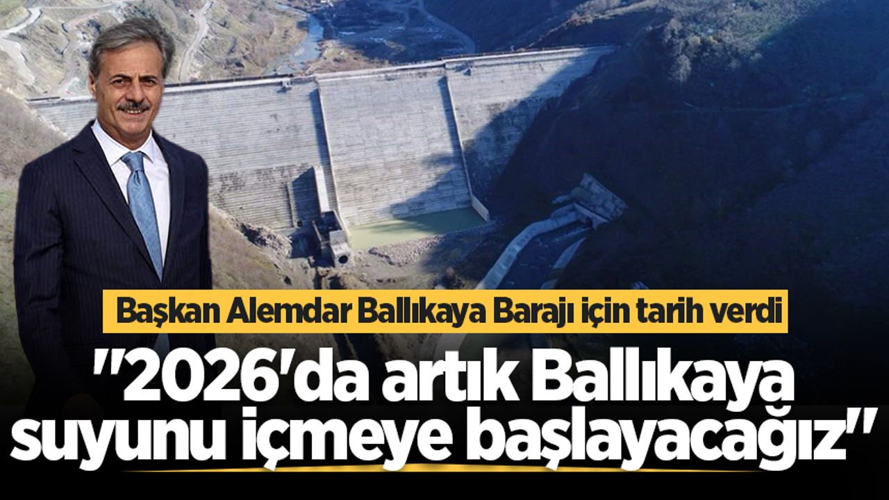 Ballıkaya Barajı içme suyu isale hattının 7 milyar TL’lik birinci etabının 2 Aralık’ta ihaleye çıkacağını belirten Başkan Alemdar, baraj için tarih vererek, "Şu anda toplamda 16.2 milyar TL’lik Ballıkaya barajımızın içme suyu isale hattının birinci etabı dediğimiz Ballıkaya'dan bizim hemen Hızır İlyas Tepesi'ne gelecek şekilde 7 milyarlık isale hattının birinci etabı 2 Aralık'ta ihaleye çıkıyor. Allah nasip ederse 2 Aralık'ta ihalemiz yapılıyor. 2026'da artık Ballıkaya suyunu içmeye başlayacağız." dedi.