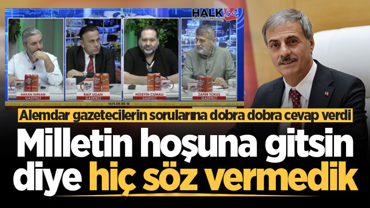 Sakarya’nın genelinde yapılan çalışmalar, projeler ve yeni projelerin durumu hakkında gazetecilerin sorularını yanıtlayan Sakarya Büyükşehir Belediye Başkanı Yusuf Alemdar vatandaşı yanıltmak, oyunu almak için asla vaatler vermediğine dikkat çekti. Alemdar, “Hiçbir şekilde yapamayacağımız bir sözle ilgili, bir işle ilgili, ne olursa olsun, asla o işle ilgili söz vermedik. Bir iş söylediysek. Söz verdiysek de hesabımızı, çalışmamızı iyi yaparız” dedi.