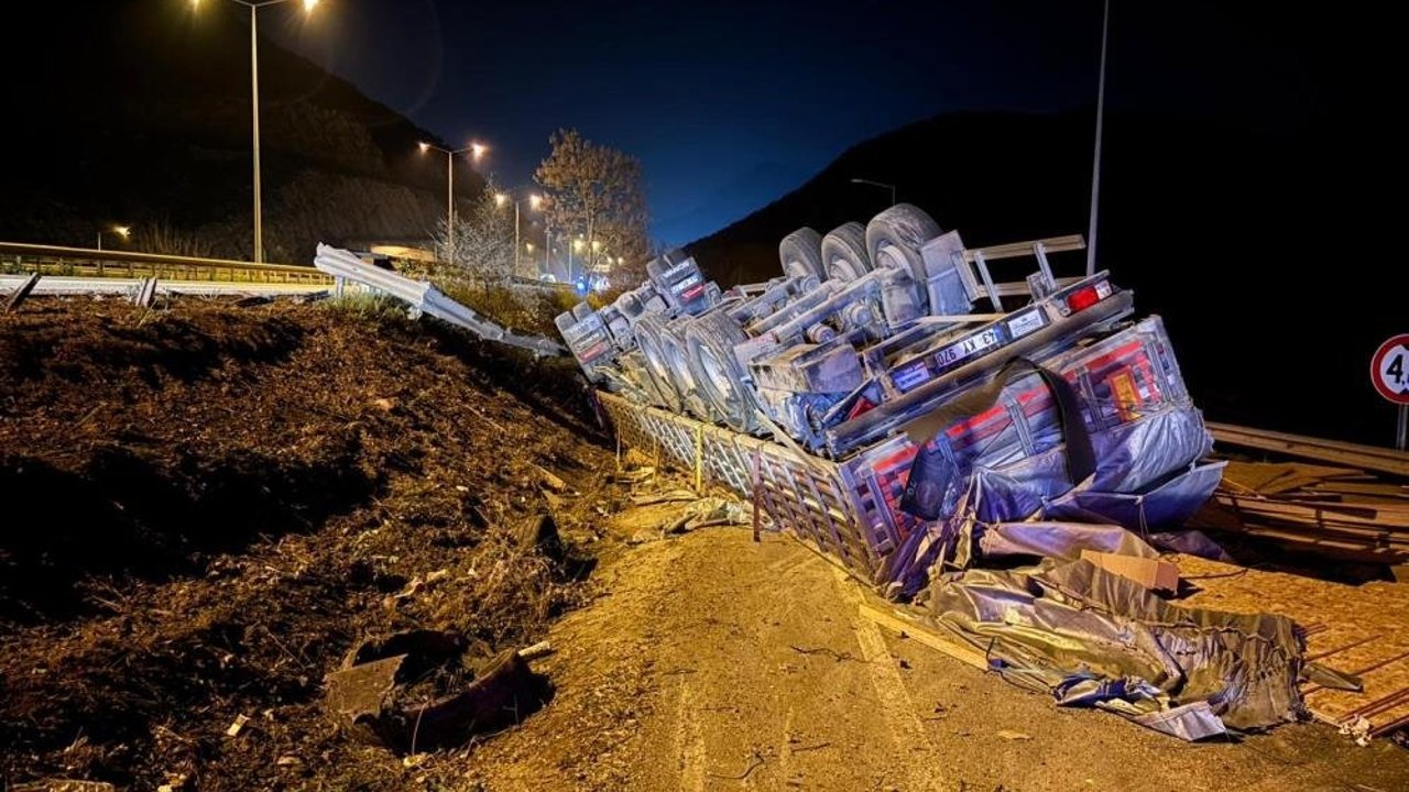 Kaza, dün gece, Vezirhan Beldesi girişi bağlantı yolu mevkiinde meydana geldi. Edinilen bilgilere göre Bilecik'ten Sakarya yönüne seyreden 43 KY 775 plakalı sunta yüklü tır sürücüsü Coşkun Ö. bir anda aracın direksiyon hakimiyetini kaybetti. Kontrolden çıkan tır devrilirken, dorsesindeki suntalar yola saçıldı. Meydana gelen trafik kazasında araç sürücüsü Coşkun Ö. yaralandı. Yaralı olay yerine gelen acil servis ekiplerince yapılan ilk müdahalenin ardından Bilecik Eğitim ve Araştırma Hastanesine kaldırıldı.
