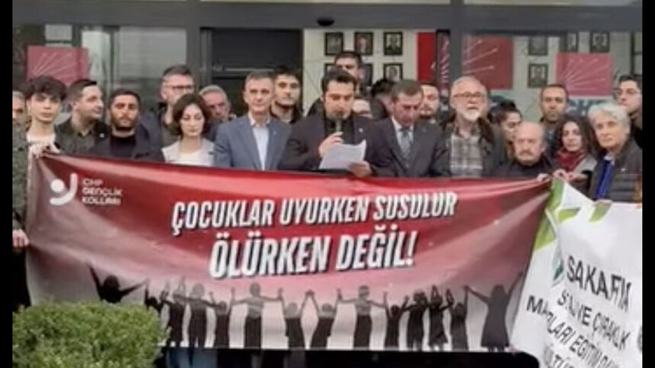 CHP Sakarya İl Gençlik Kolları, Mesleki Eğitim Merkezleri'nde görevli çocukların ucuz iş gücü olarak değerlendirilmesine tepki göstermek amacıyla CHP il binası önünde basın açıklaması yaptı.