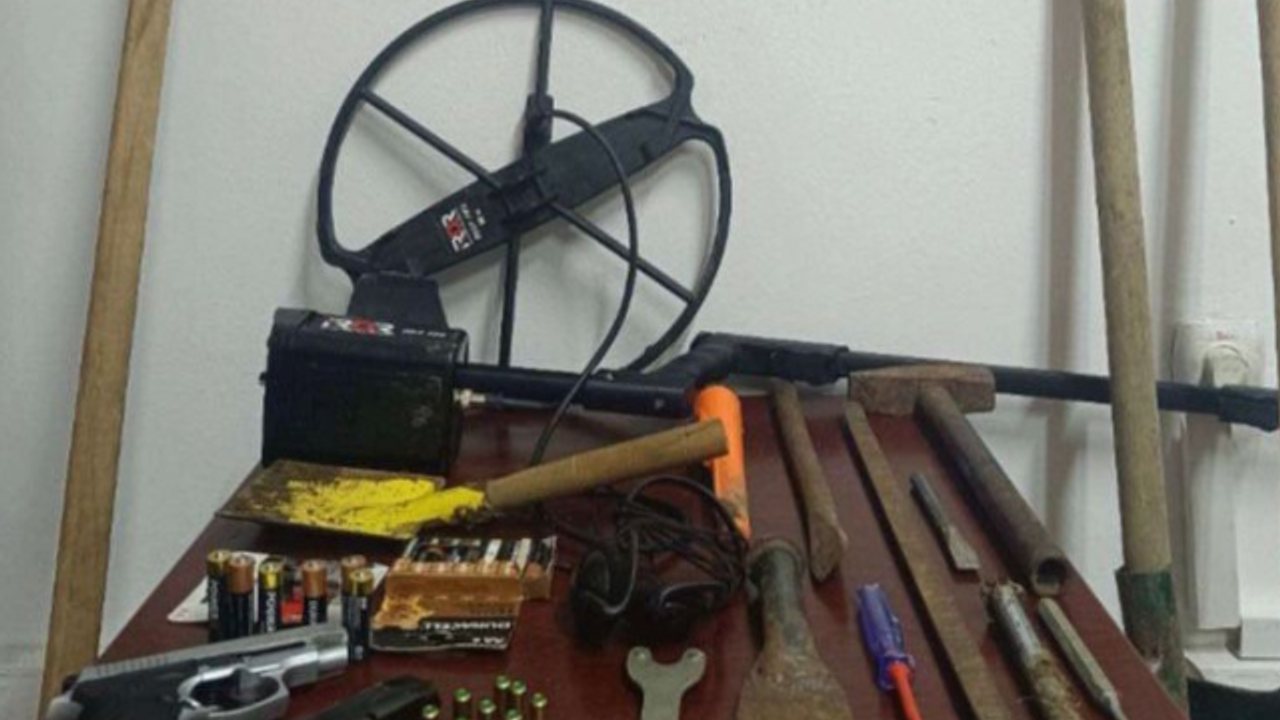 Belirlenen bölgeye düzenlenen operasyonda, define aramak için kazı yapan 4 şüpheli suçüstü yakalandı. Kazı alanında yapılan aramada 2 dedektör, 13 pil, 1 demir levye, 1 spatula, 5 murç, 1 çekiç, 3 kürek, 1 kazma, 1 kontrol kalemi, 1 merdiven, 1 ruhsatsız kurusıkı tabanca ve 13 tabanca mermisi ele geçirildi.