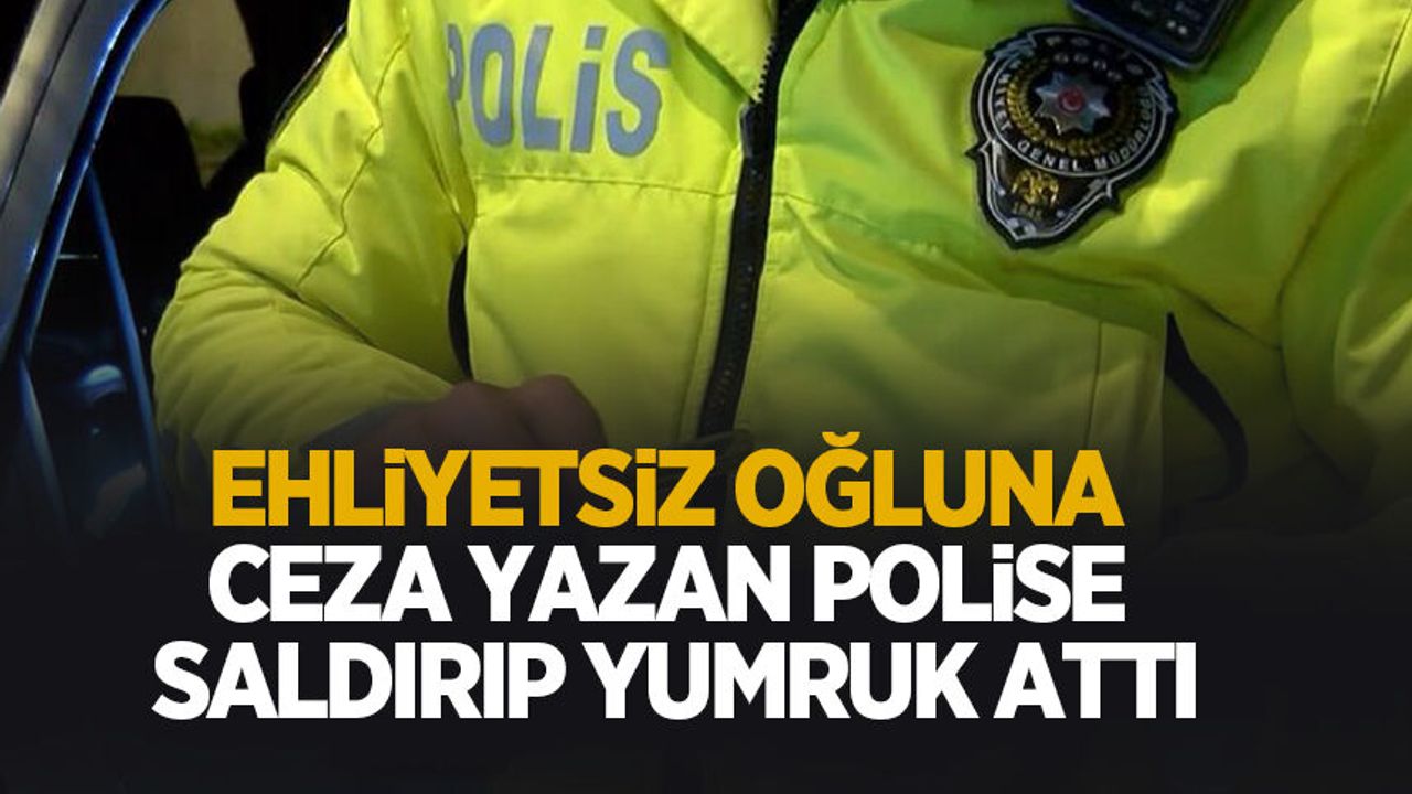 Ekipler, yasal mevzuatlar gereği araç sürücüsüne 40 bin TL tutarında idari para cezası uyguladı. Ceza yazılmasına sinirlenen araç sürücüsünün babası, görevli polis memuruna yumruk attı.