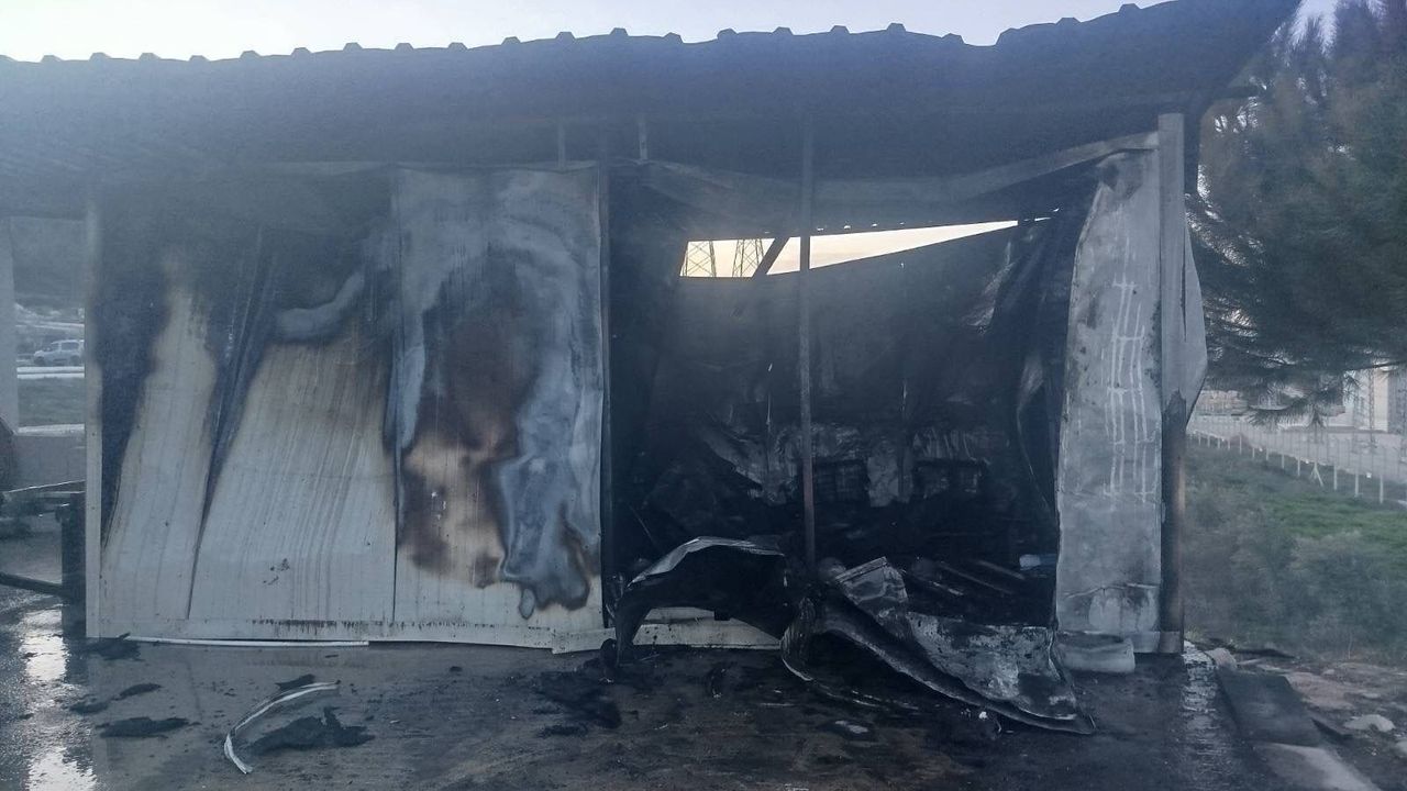 Yangın nedeniyle konteyner ile içerisinde bulunan 2 koltuk, 1 masa ve 1 elektrikli ısıtıcı kullanılamaz hale geldi.