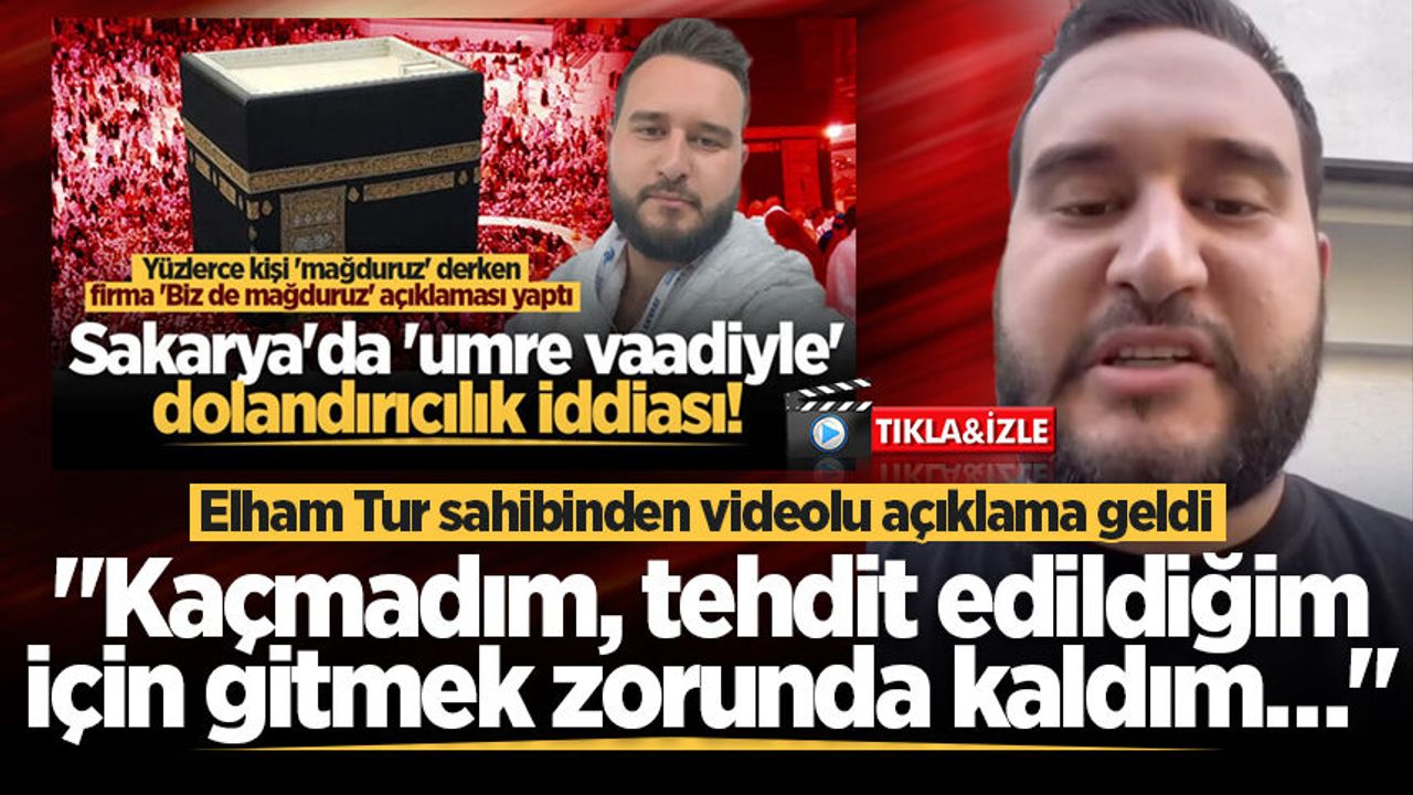 Sakarya’da “umreye götürme” vaadiyle yaklaşık 2 bin kişinin dolandırıldığı iddialarıyla gündeme gelen İstanbul merkezli Elham Tur Hac & Umre Turizm Şirketi ile ilgili yeni bir gelişme yaşandı. Şirket sahibi Ümit Sekmen, yayımladığı video ile kamuoyuna açıklamalarda bulundu.