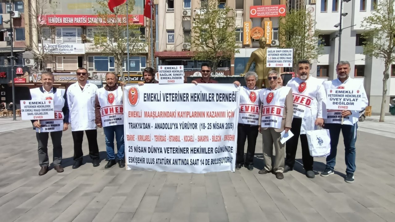 Edirne’den başlayarak Eskişehir’e uzanan “Hak Arama Yürüyüşü” kapsamında Emekli Veteriner Hekimler Derneği (EVHED) üyeleri Sakarya’ya kadar geldi.