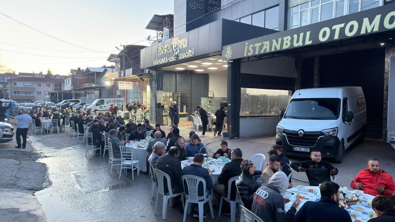 Ramazan ayının birlik ve dayanışma ruhunu yaşatmak amacıyla düzenlenen iftar programına sanayi sitesi esnafı, Erenler Belediye Başkanı Şenol Dinç, Sakarya Esnaf ve Sanatkarlar Odası Başkanı Turhan Salihoğlu ve davetliler katıldı. Yoğun katılımın olduğu programda esnaf aynı sofrada buluşarak oruçlarını birlikte açtı ve Ramazan’ın manevi atmosferini paylaştı.