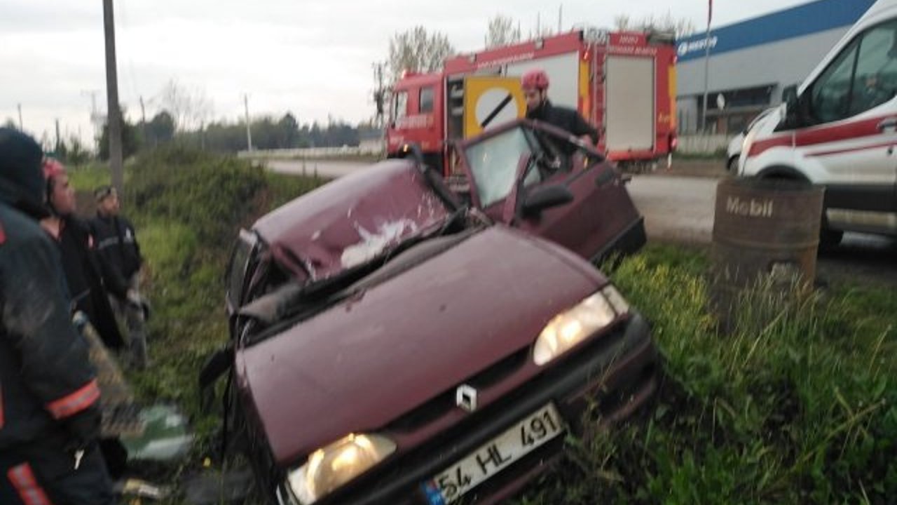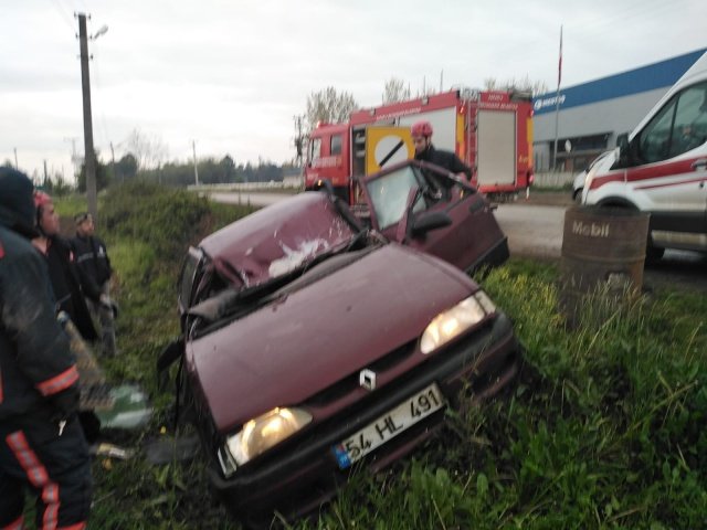AKYAZI'DA OTOMOBİL ŞARAMPOLE YUVARLANDI!