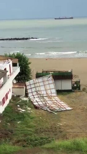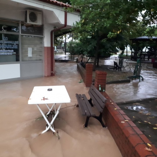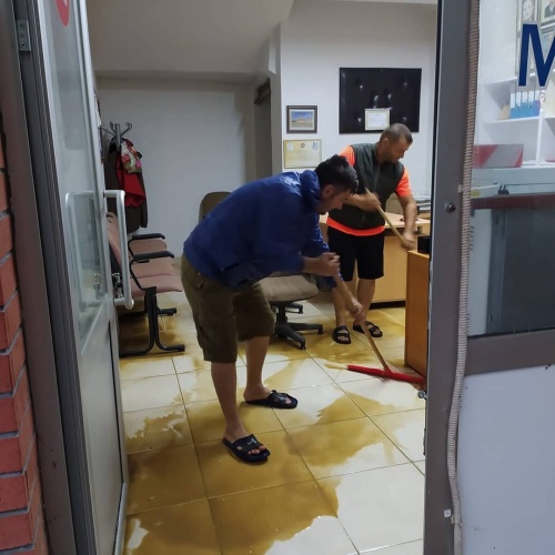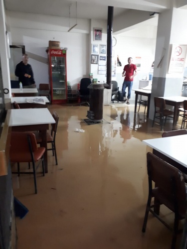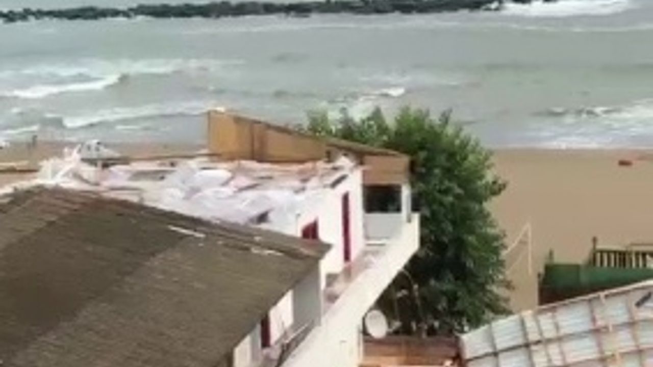 Karasu'da pansiyonun çatısı uçtu, dükkanlar suyla doldu