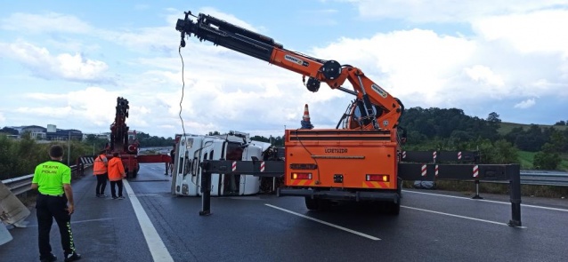 TEM'de devrilen tır kaldırıldı