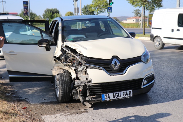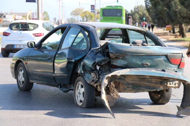 Yeşil ışıkta duran araca arkadan çarptı