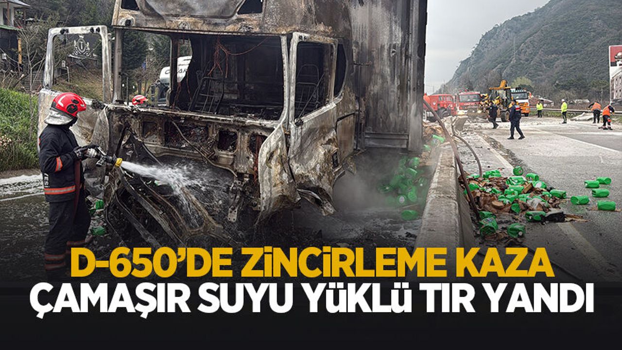 Edinilen bilgiye göre, D-650 kara yolu Sakarya geçişinde Bilecik istikametine seyir halinde olan M.Ç. (45) yönetimindeki 42 HC *** plakalı çamaşır suyu yüklü tır ile L.A. idaresindeki 10 AUP *** plakalı tır çarpıştı. Çarpışmanın ardından 42 HC *** plakalı tır refüje çarparak alev alırken, karşı yönde seyreden M.A.B. idaresindeki 64 HF *** plakalı Mazda marka otomobil kaza sebebiyle yola saçılan beton molozlara çarptı.