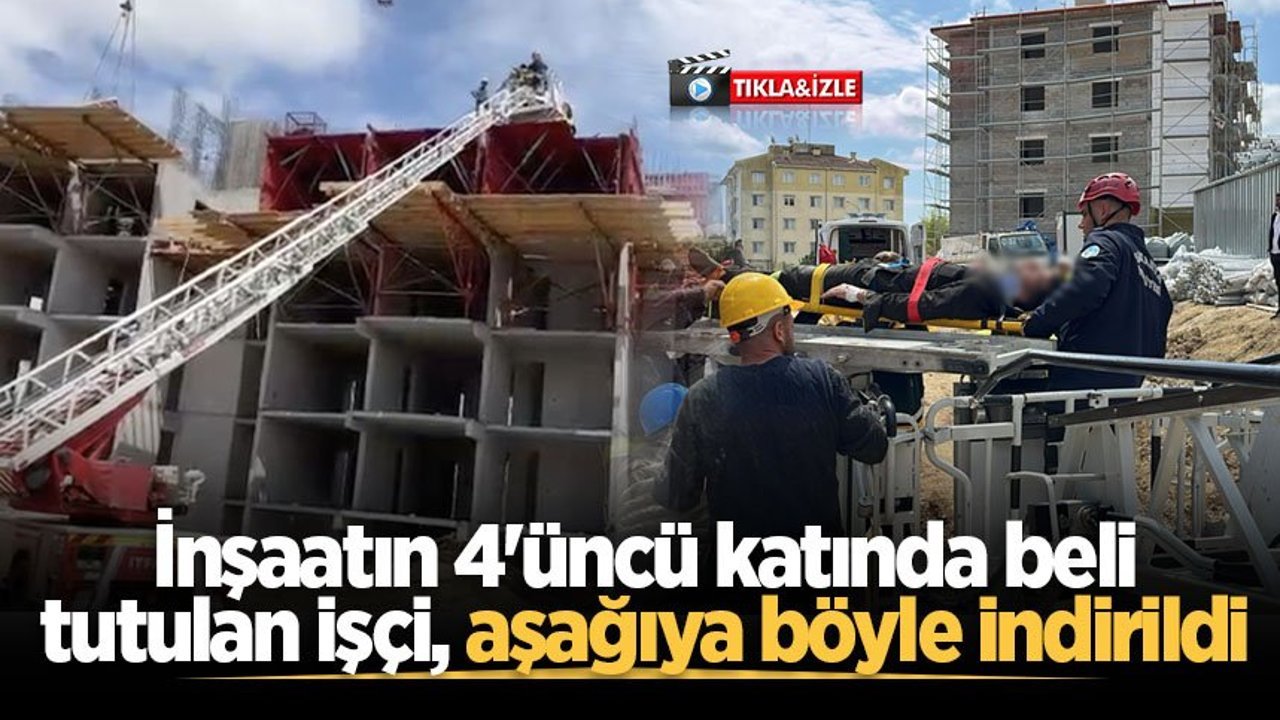İtfaiye ekipleri, sepetli araç yardımıyla işçiyi inşaatın dördüncü katından güvenli şekilde aşağı indirdi.