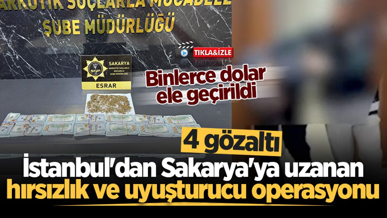 Alınan bilgiye göre, Sakarya Cumhuriyet Başsavcılığı'nın koordinesinde, Sakarya İl Emniyet Müdürlüğü Narkotik Suçlarla Mücadele Şube Müdürlüğü tarafından Adapazarı ilçesindeki bir eve baskın yapıldı. Gerçekleştirilen operasyonda, E.G (42), Y.A.T (24) ve B.T. (26) isimli şahısların kaldığı adreste ve bir aracın bagaj kısmında yapılan aramalarda 130 bin dolar ve 20 gram esrar ele geçirildi. Sakarya polisi, evde ele geçirilen yüklü miktardaki paranın izini sürdü.