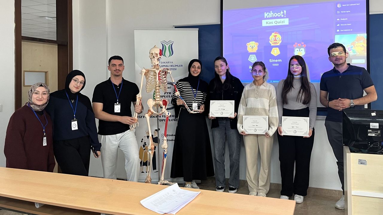 Sakarya Uygulamalı Bilimler Üniversitesi (SUBÜ) Fizyoterapi ve Rehabilitasyon Topluluğu ‘Kas Quizi” etkinliği düzenledi. Etkinlik ile Sağlık Bilimleri Fakültesi Fizyoterapi ve Rehabilitasyon Bölümü ilk sınıf öğrencilerinin ders içeriklerine olan ilgisini arttırmak, aktif katılımı teşvik etmek ve öğrenme sürecini daha eğlenceli bir ortamda desteklemek hedeflendi. Etkinlikte, kas anatomisi ve temel fizyoterapi bilgilerinin pekiştirilmesine yönelik sorular hazırlandı. Değerlendirme süreci ise etkileşimli öğrenme imkânı sunan ‘Kahoot’ isimli uygulama üzerinden gerçekleştirildi. Quiz sonunda en yüksek başarıyı gösteren ilk üç öğrenciye tebrik belgesi takdim edildi.