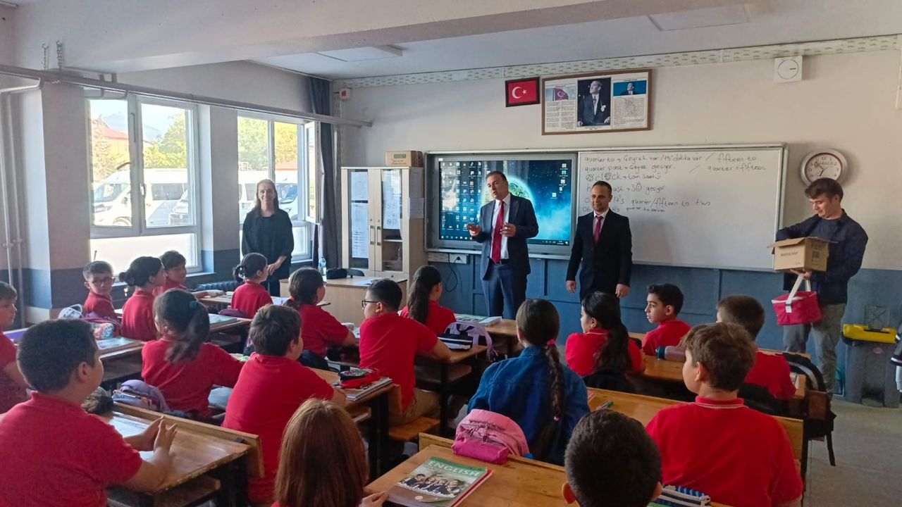 Osmangazi Ortaokulu ve Kız İmam Hatip Ortaokulu'nu ziyaret eden kaymakam Güven, öğrencilerle sohbet ederek ikramda bulundu.