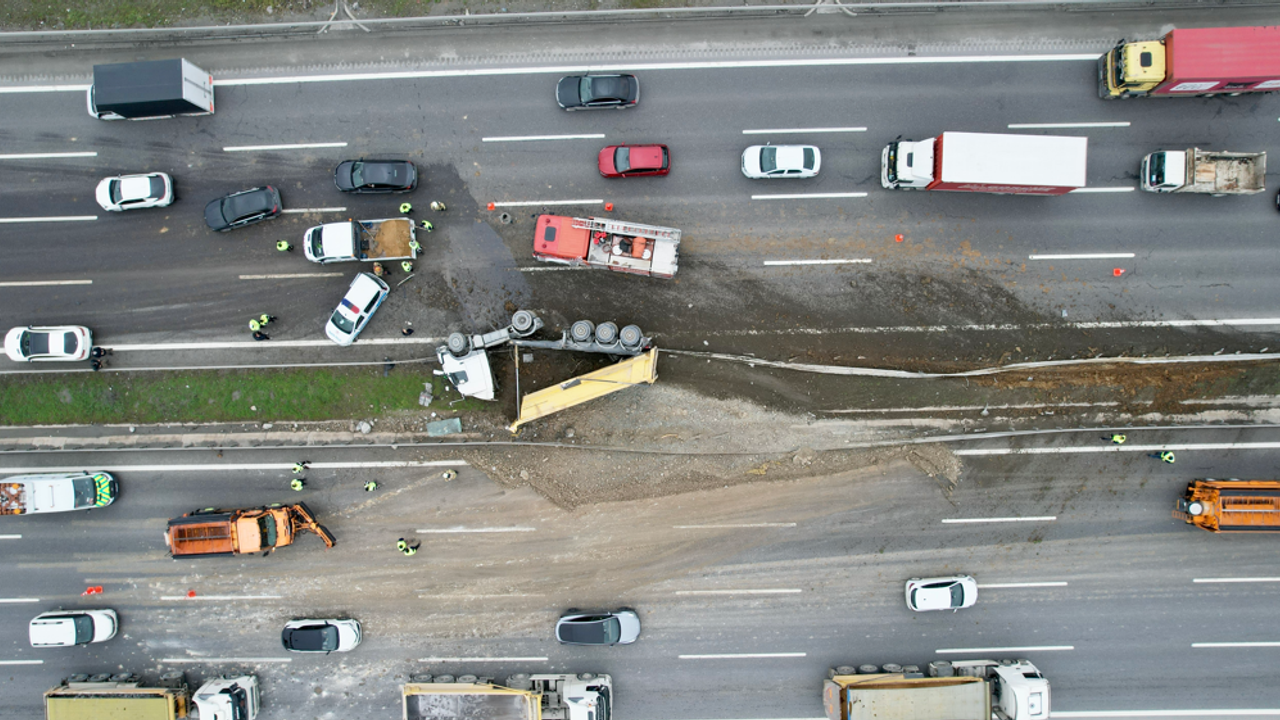 Polis ekipleri otoyol üzerinde geniş güvenlik önlemleri alırken, karayolları ve belediye ekipleri yola dökülen hafriyatın temizlenmesi ve kamyonun bulunduğu yerden kaldırılması için çalışma başlattı.