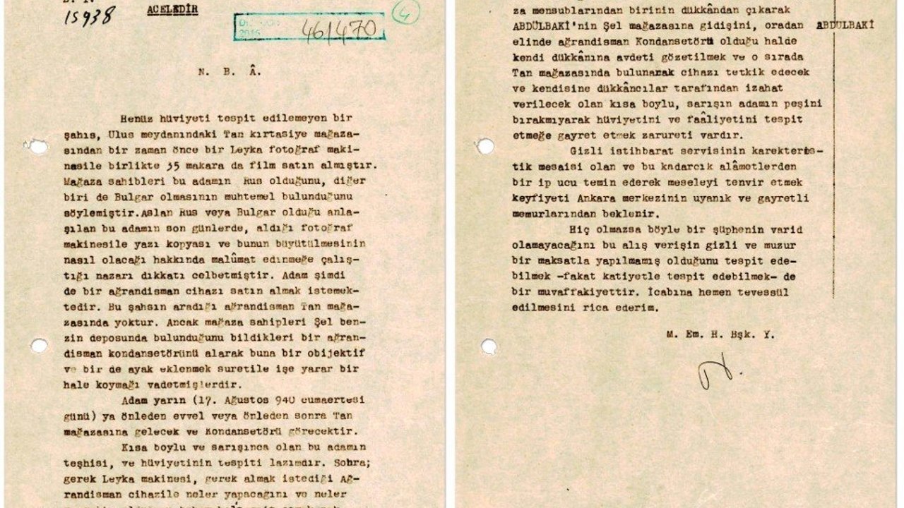 "Gizli istihbarat servislerinin karakteristik mesailerinden olan alametlerden ipucu temin ederek meseleyi aydınlatmanın Ankara merkezinin uyanık ve gayretli memurlarından beklenir" ifadeleri yer alan belgede, hiç olmazsa bu alışverişin zararlı maksatla yapılmadığının tespitinin başarı olduğu belirtildi ve icabına tevessül edilmesi rica edildi.