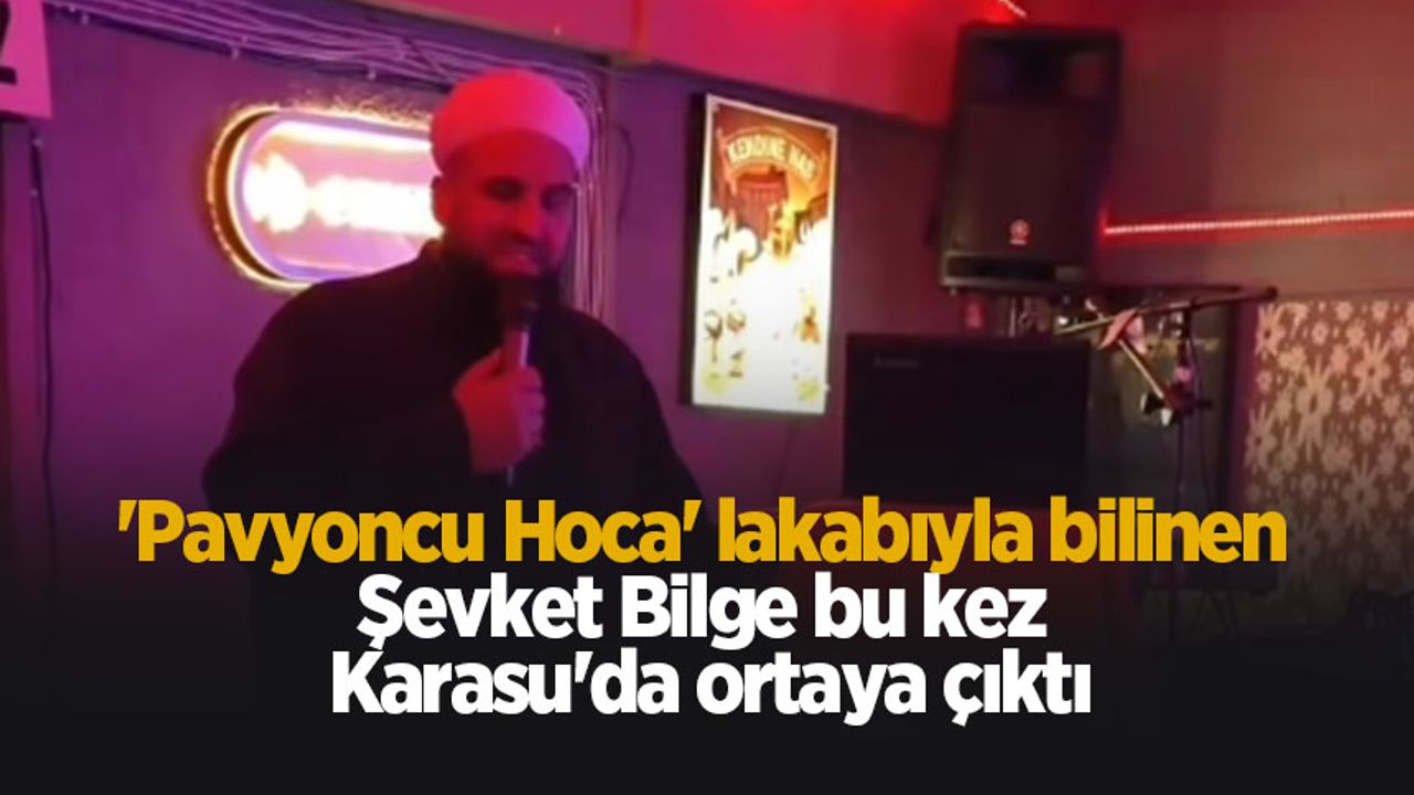 Türkiye genelinde eğlence mekanlarını gezerek dini anlatımıyla dikkat çeken ve kamuoyunda “Pavyoncu Hoca” olarak tanınan Şevket Bilge, Geyve'nin ardından bu kez Karasu ilçesinde ilçesinde bir eğlence mekanında ortaya çıktı.