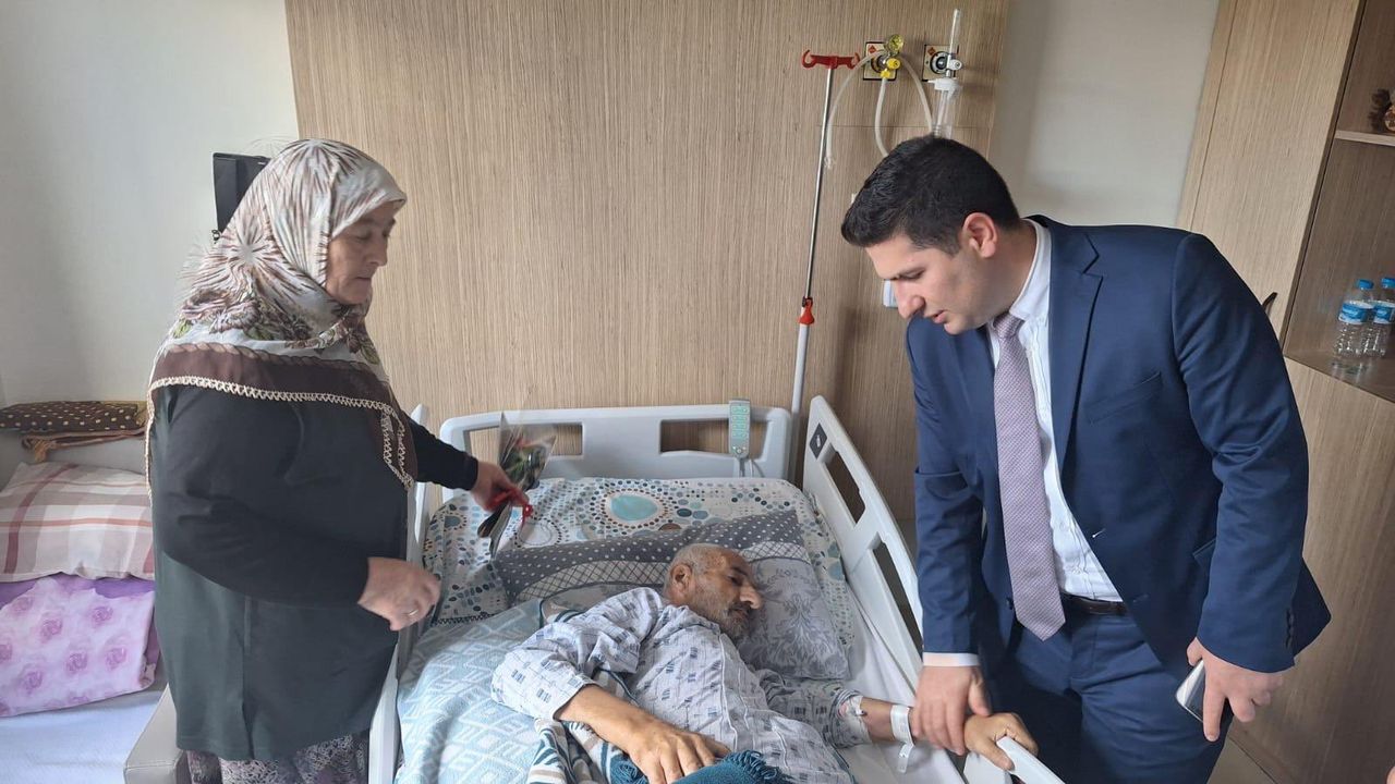 Ziyaret sırasında hastalara çiçek takdim eden Özdemir, meslektaşlarından hastaların sağlık durumları ile ilgili bilgiler aldı.