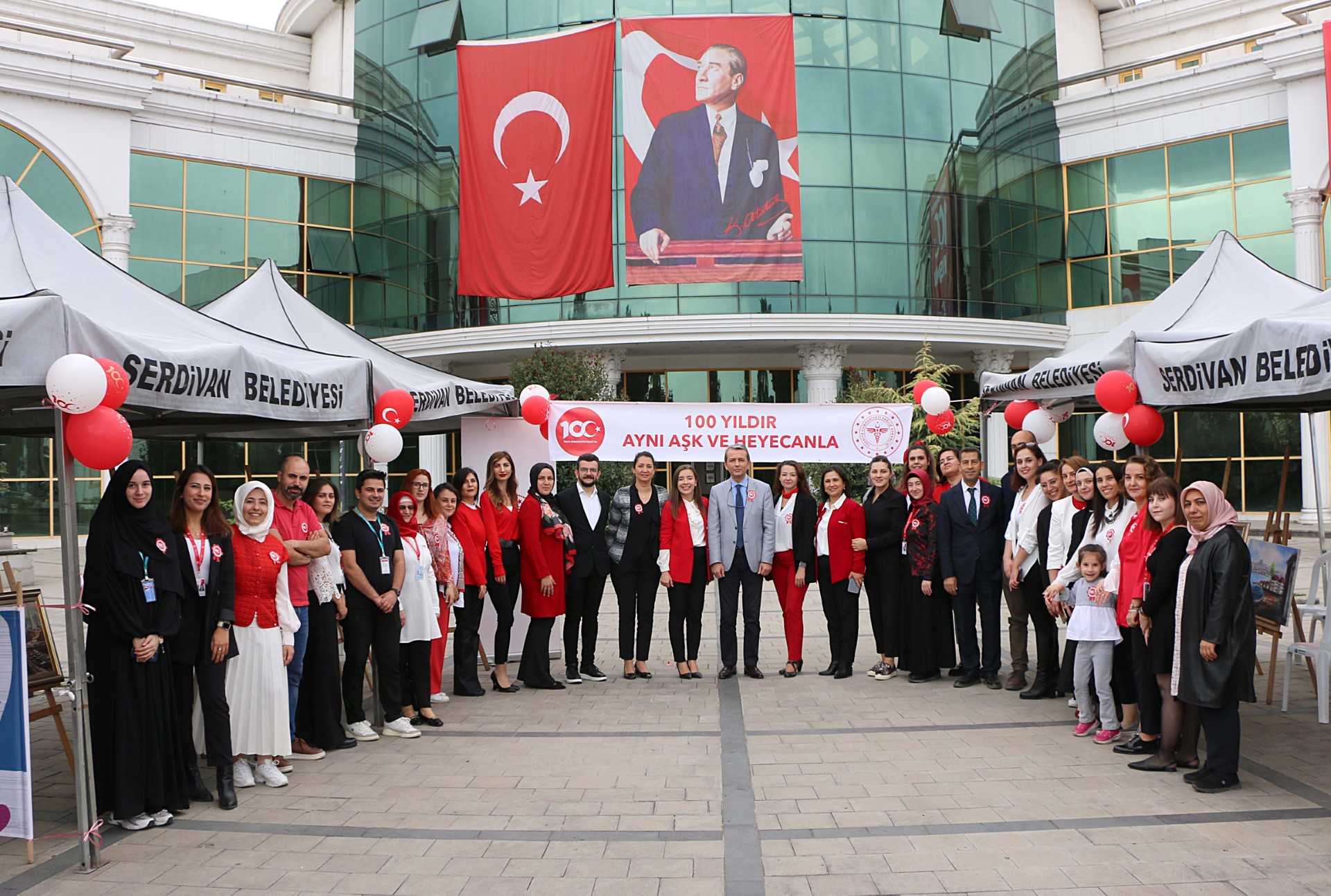 İl Sağlık Müdürlüğü tarafından Cumhuriyetimizin 100. Yılı kapsamında “100. Yıl Aynı Aşk ve Heyecanla” temalı etkinlik düzenlendi. Serdivan Belediyesi ve Özel Şahin Okulları Sağlık Meslek Lisesinin katkılarıyla Belediye binası önünde gerçekleşen etkinliğe İl Sağlık Müdürü Prof. Dr. Aziz Öğütlü, Halk Sağlığı Hizmetleri Başkanı Dr. Yasin Çatalbaş, Sağlık Hizmetleri Başkanı Dr. Serdar Değirmenci, Serdivan Belediyesi Kültür ve Sosyal İşler Müdürü İbrahim İkiz, idari yöneticiler ile sağlık personeli katıldı.