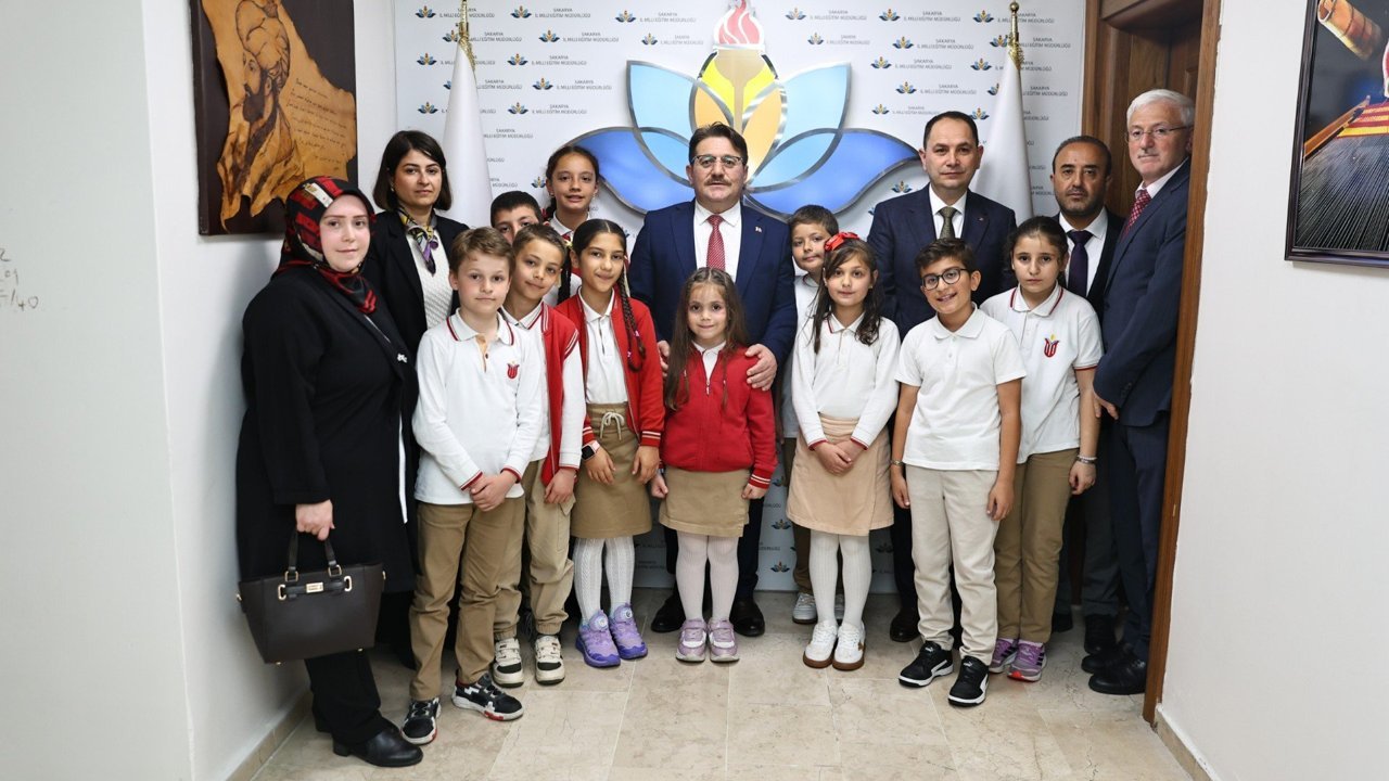 Adapazarı Osmanbey İlkokulu öğrencileri, öğretmenleriyle birlikte İl Millî Eğitim Müdürü Coşkun Bakırtaş’ı ziyaret etti. 23 Nisan Ulusal Egemenlik ve Çocuk Bayramı kapsamında gerçekleştirilen ziyarette, öğrenciler bayramın coşkusunu bir kez daha yaşadı.