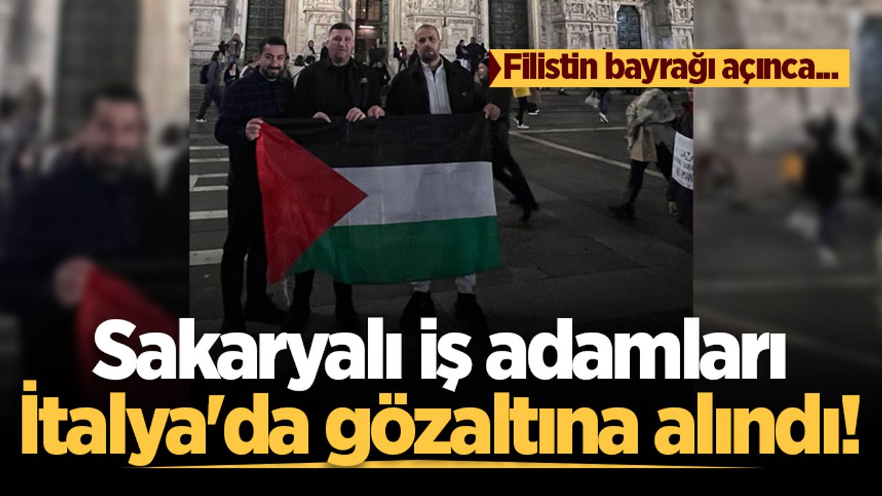 İtalya polisi tarafından alandan uzaklaştırılan Sakaryalı üç iş adamı, gözaltına alındı. Gözaltına alınan Sakaryalı 3 iş adamı ifadeleri alındıktan kısa süre sonra serbest bırakılırken, yaşadıkları olaya ilişkin konuşan Murat Ekşi "Seyahat amaçlı geldiğimiz Milano’da Filistin bayrağı açtığımız için gözaltına alındık. Kısa süre gözaltında tutup ifade aldıktan sonra serbest bıraktılar. Bu garip tutuma bir anlam veremedik” dedi.