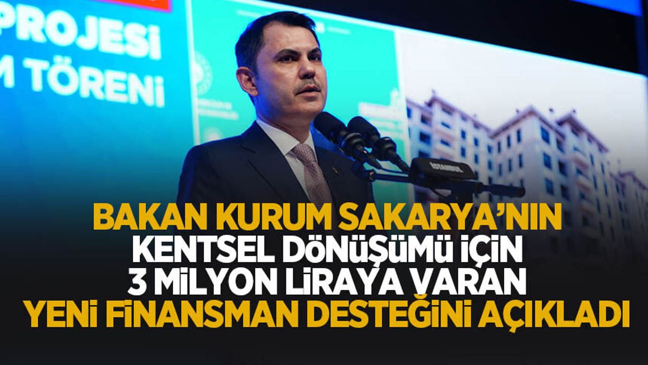 Bakan Kurum, Sakarya'nın kentsel dönüşümü için yeni destek paketini duyurdu. İlk etapta Sakarya, Kocaeli, İstanbul, İzmir, Tekirdağ ve Manisa illerini kapsayan destek paketi ile ilgili konuşan Bakan Kurum; "