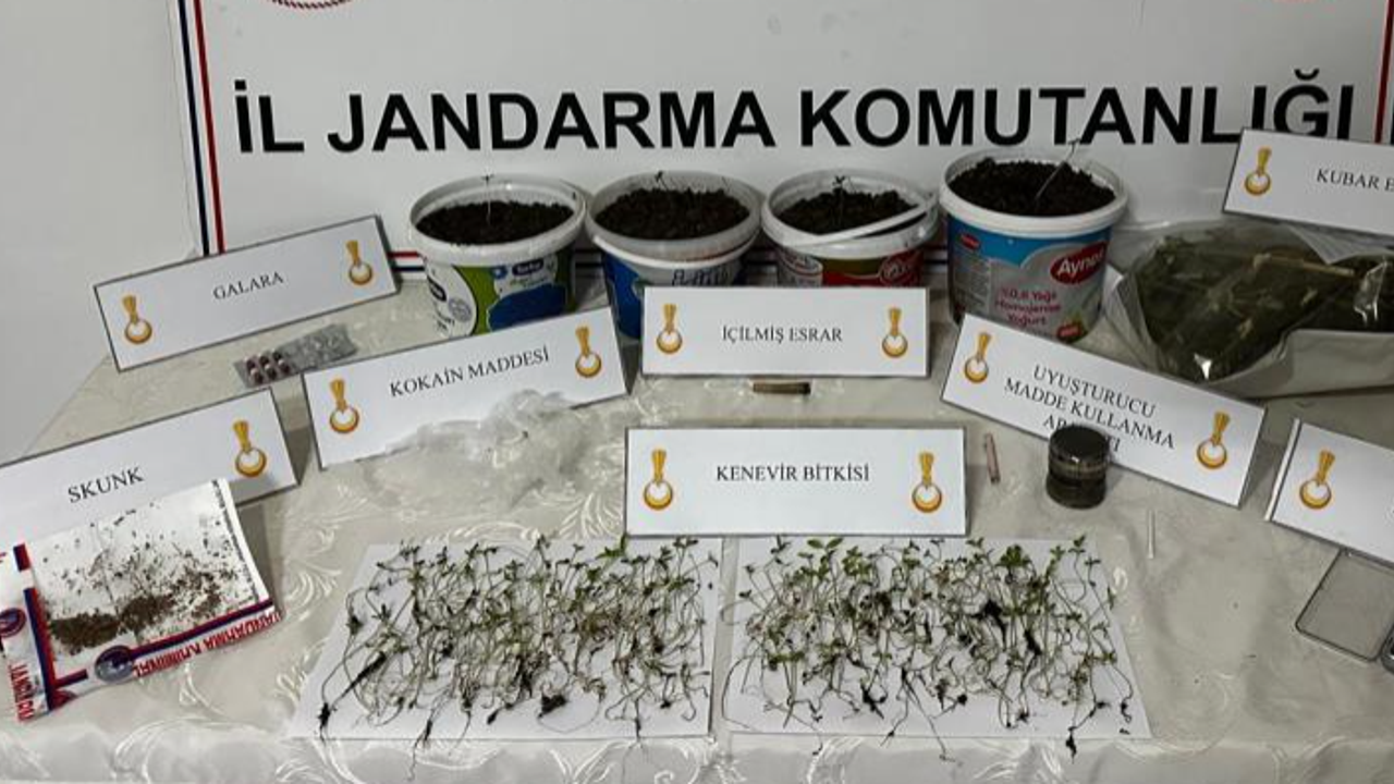 Eve yapılan baskında 225 kök kenevir bitkisi, 247 gram kubar esrar, 9 gram kokain, 1 gram skunk, 6 adet uyuşturucu hap, 1 adet hassas terazi, 3 adet uyuşturucu madde kullanma aparatı ele geçirildi.