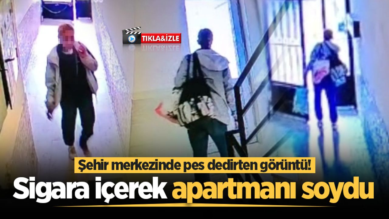 Çaldığı eşyaları sırtındaki çantaya ve elindeki iki poşete dolduran kadın, elinde sigara ile son derece sakin ve rahat tavırlarla apartmandan ayrıldı.