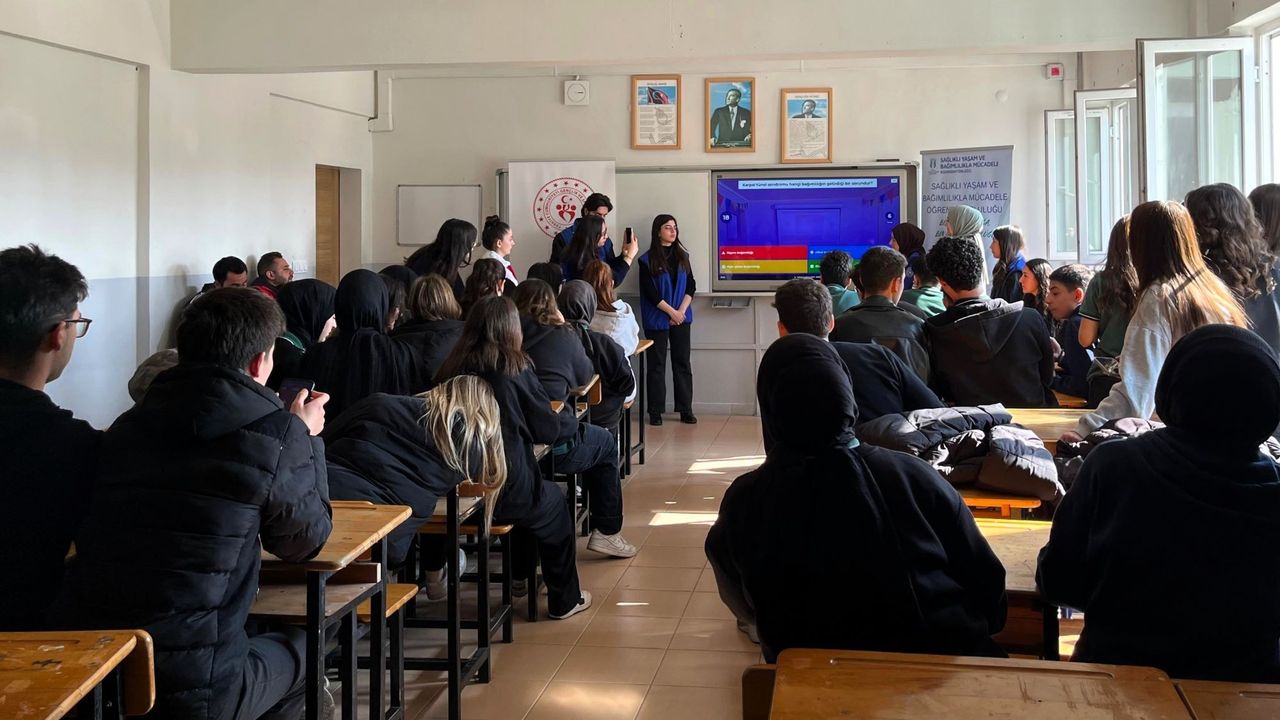Akyazı Anadolu Lisesi’nde öğrencilerin bağımlılık konusunda bilinçlenmesine yönelik olarak Topluluk Akademik Danışmanı Araştırma Görevlisi Esma Akgül tarafından ‘Ekran/Teknoloji Bağımlılığı Farkındalığı’ başlıklı eğitim verildi. Eğitim sonunda öğrencilerin edindikleri bilgileri pekiştirmeleri amacıyla kısa bir bilgi yarışması düzenlendi ve yarışmayı kazanan öğrenciye ‘Sağlık Sepeti’ hediye edildi. Cumhuriyet Ortaokulu’nda gerçekleştirilen etkinlikte ise öğrencilerle bağımlılık konusunda farkındalık oluşturmayı amaçlayan ‘Bağımlılıktan Kaç ve Riskleri Patlat’ adlı oyun oynandı. Kötü alışkanlıkların yazılı olduğu balonların patlatılması üzerine kurgulanan etkinliğin ardından öğrencilerle geleneksel çocuk oyunları oynandı. Böylece hem bağımlılıklara karşı farkındalık oluşturulması hem de geleneksel oyun kültürünün yaşatılması amaçlandı.