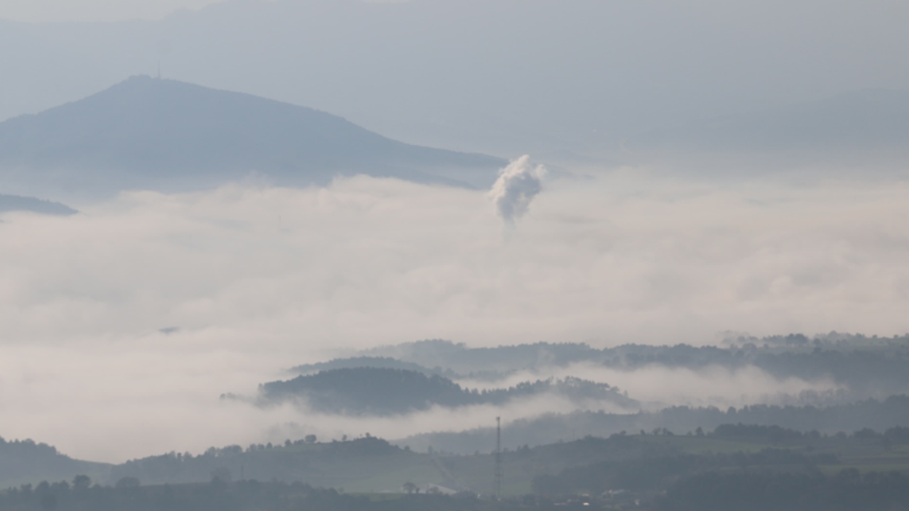 Sabah saatlerinde ilçeye çöken yoğun sis tabakasının arasından yükselen dağlar kartpostallık manzaralar oluşturdu.
