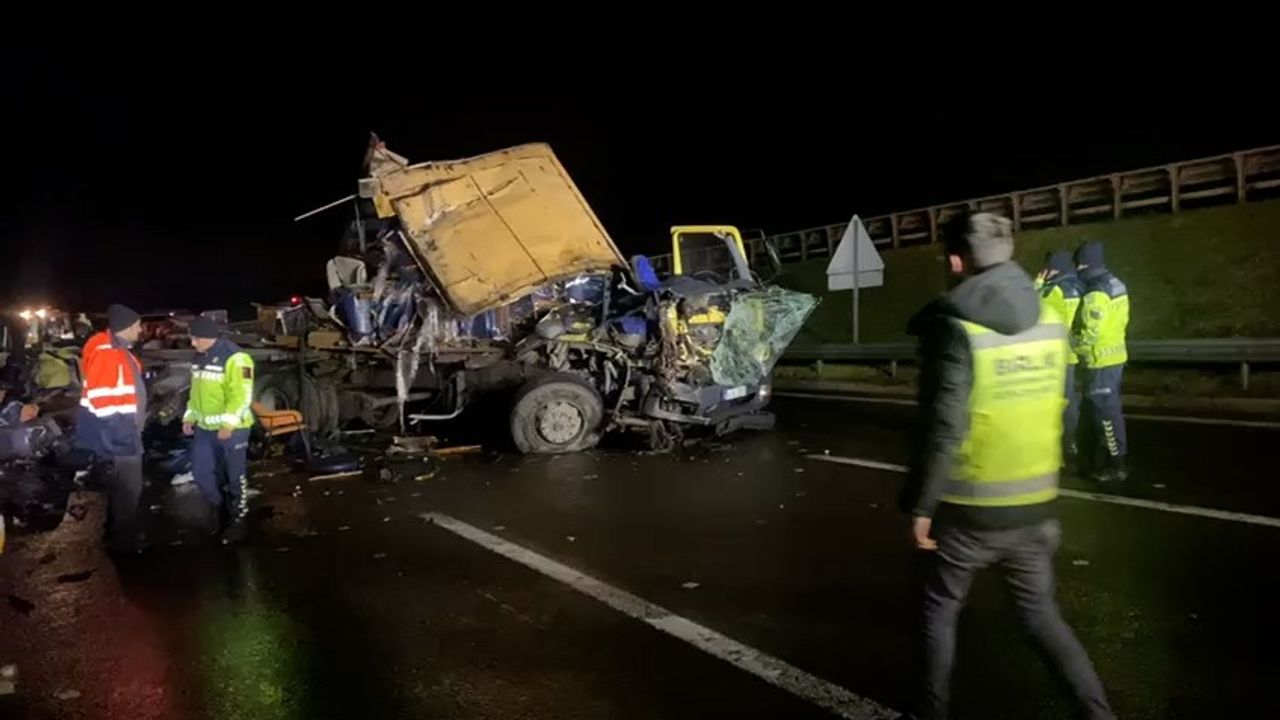 Kaza, TEM Otoyolu’nun Bolu geçişinde Yumrukaya mevkiinde meydana geldi. Edinilen bilgiye göre, Ankara istikametine seyreden ve sürücüsünün ismi öğrenilemeyen mobilya yüklü kamyon ile tır çarpıştı.