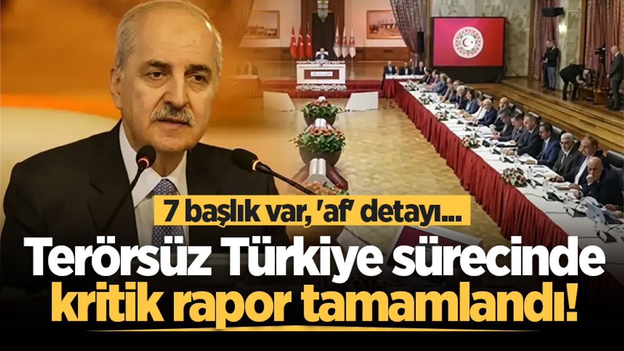 Terörsüz Türkiye kapsamında kurulan TBMM Milli Dayanışma, Kardeşlik ve Demokrasi Komisyonu raporunu tamamladı.Söz konusu raporu kamuoyuyla paylaşan TBMM Başkanı Numan Kurtulmuş, "Rapor 7 bölümden oluşuyor. 88 saat çalışma yapıldı, 4 bin 199 sayfa tutanak tutuldu" dedi. 7 bölümden oluşan raporda terör örgütü PKK'nın kendisi feshetmesi, temel hedefler, Türk-Kürt kardeşlik tarihi, dinleyici analizleri ve yasal düzenleme önerileri bulunurken; 'af' detayı ise dikkat çekti.