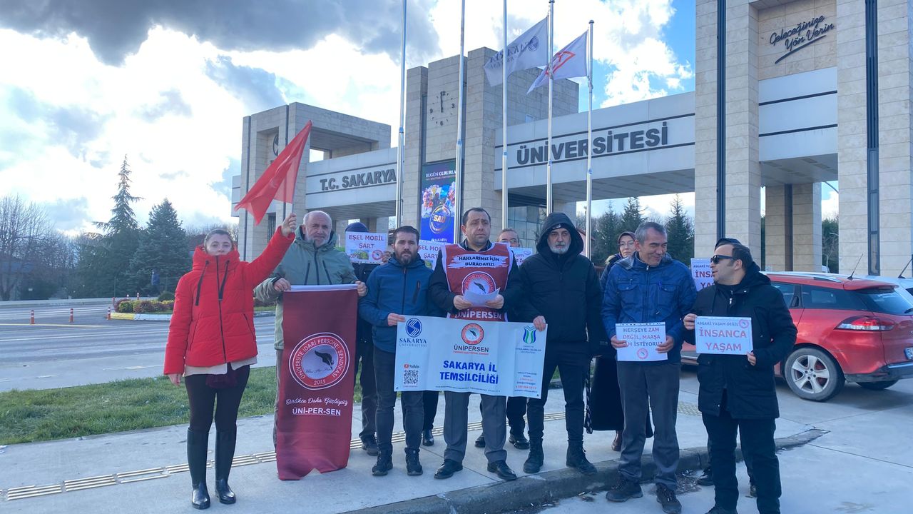 Üniversite İdari Personel Sendikası (ÜNİ-PER-SEN) Sakarya Temsilciliği, memurların yaşadığı ekonomik kayıplara dikkat çekmek amacıyla Sakarya Üniversitesi önünde basın açıklaması yaptı.