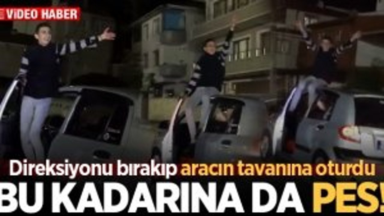 Bu kadarına da pes! Direksiyonu bırakıp aracın tavanına oturdu
